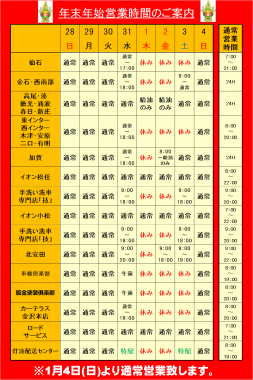各サービスステーションにて営業日等が異なりますので、要確認願います。